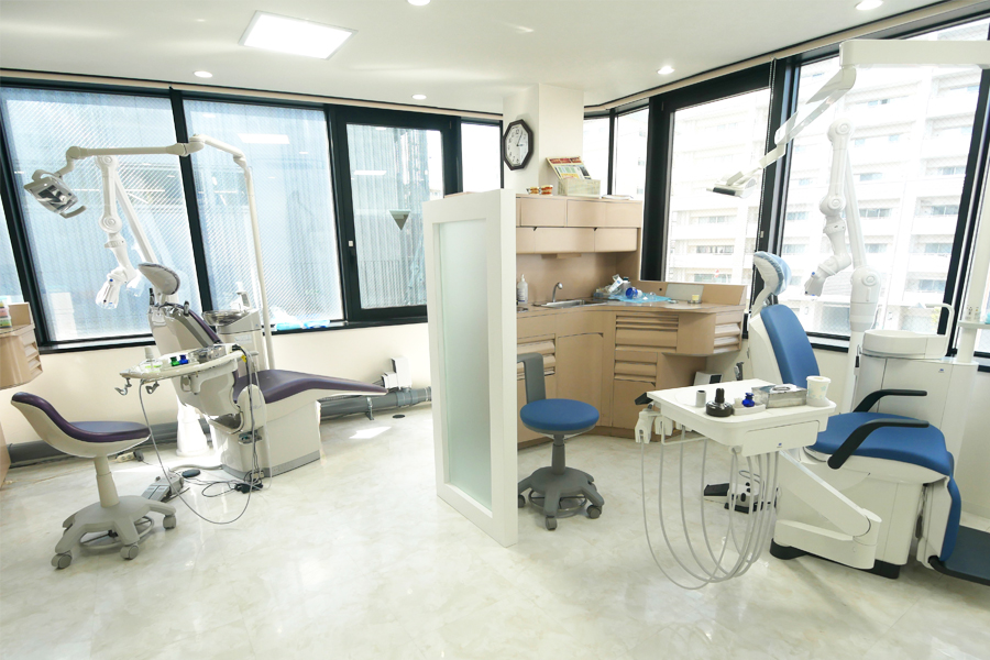 当院では治療時に生じる細かい粉塵や唾液の飛び散りを防止する口腔外バキュームを全チェアに設置しています。